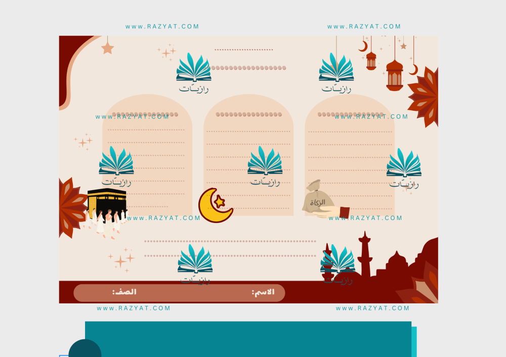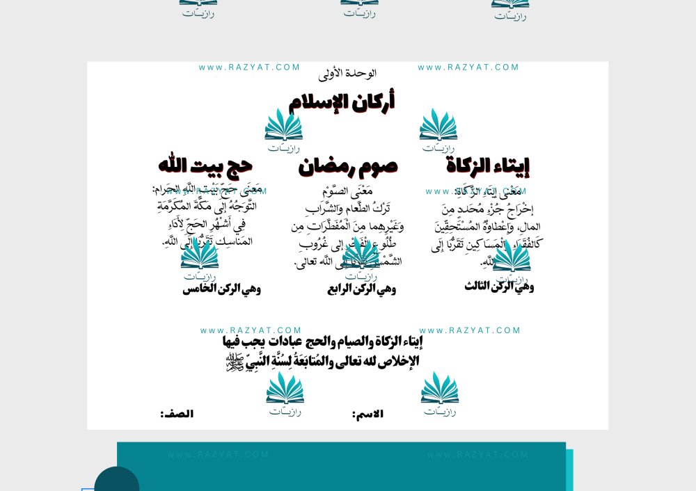مطوية أركان الإسلام درس ( إيتاء الزكاة _ صوم رمضان_ حج بيت الله الحرام)